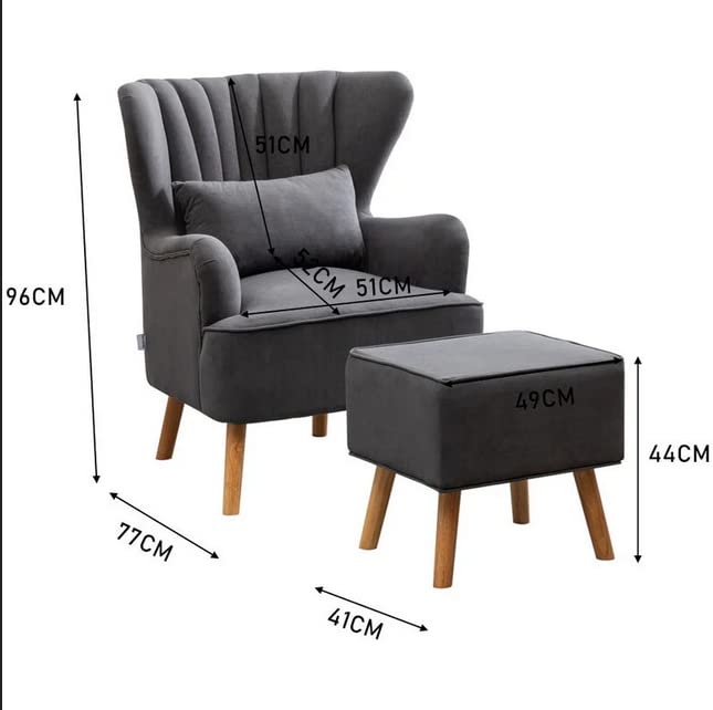 Wing Chair with Ottoman for Living Room | Luxury Rest Arm Chair for Bedroom | Single Seater Sofa for Home | Velvet Fabric - Dark Gray Colour